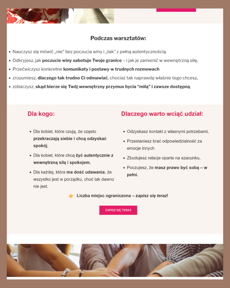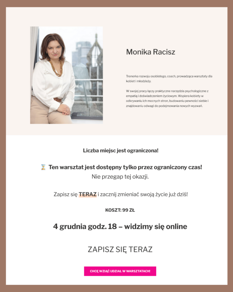 Pracuję z kobietami, które chcą odważnie wejść na rynek, zaufać sobie i budować przyszłość z mocą i pewnością.